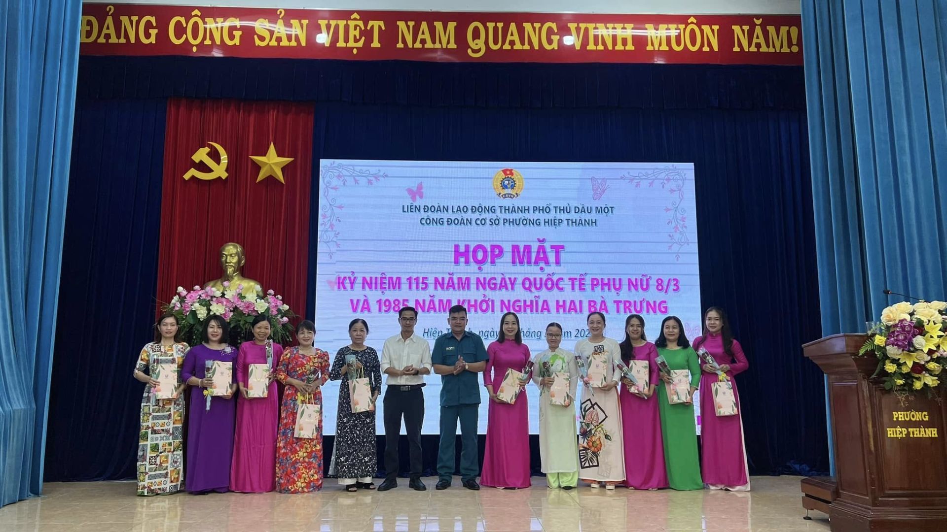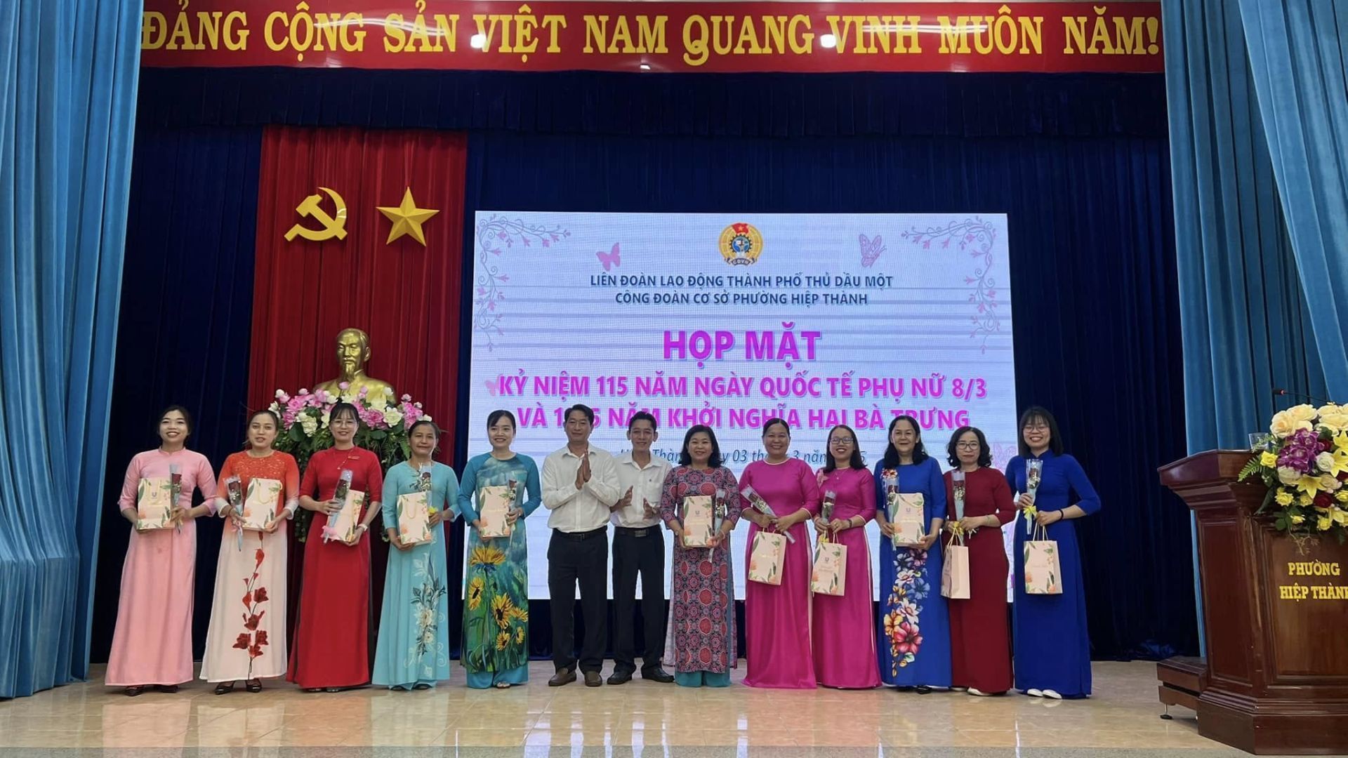 Sáng ngày 03/3/2025, Công đoàn cơ sở phường Hiệp Thành tổ chức họp mặt kỷ niệm 115 năm ngày Quốc tế Phụ nữ 8/3 (08/3/1910 - 08/3/2025) và 1985 năm Cuộc khởi nghĩa Hai Bà Trưng.