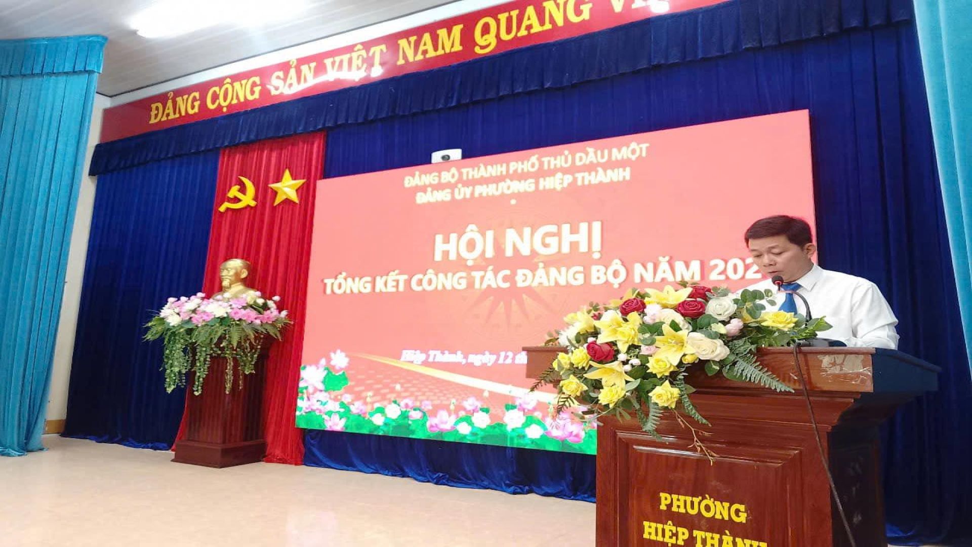 Sáng ngày 12/12/2024, Đảng ủy phường Hiệp Thành tổ chức Hội nghị Tổng kết Đảng bộ năm 2024. Đồng chí Phạm Minh Thiện - UV.BTV, Chủ nhiệm UBKT Thành ủy dự và chỉ đạo hội nghị, cùng dự có đồng chí đại diện các Ban Xây dựng Đảng. Chủ trì hội nghị có đồng chí Lê Hoàng Minh - TUV, Bí thư Đảng ủy; đồng chí Lê Thị Kim Cúc - Phó Bí thư Thường trực Đảng ủy, Chủ tịch HĐND; đồng chí Nguyễn Hoàng Khánh - Phó Bí thư Đảng ủy, Chủ tịch UBND. Cùng dự có các ngành, đoàn thể phường và cấp ủy, đảng viên 18 chi bộ trực thuộc.
