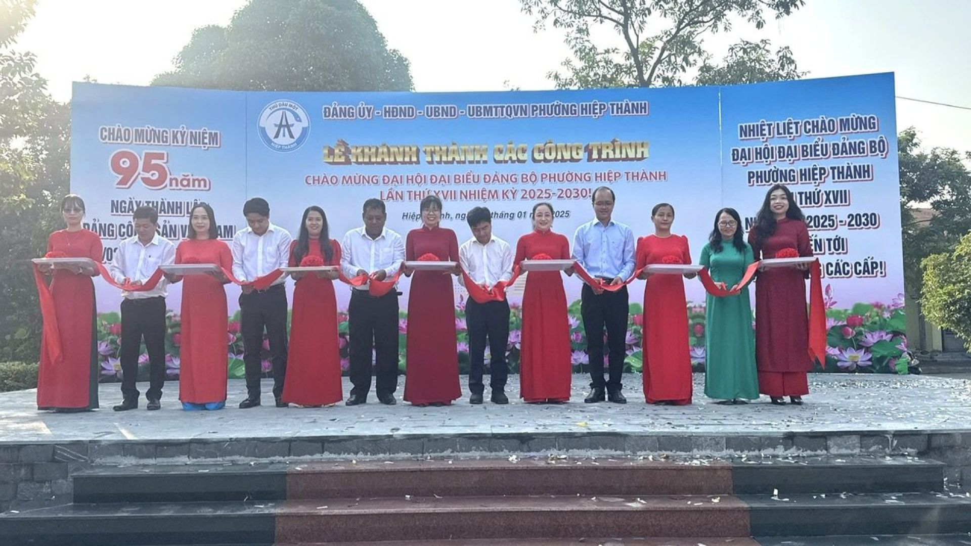 Lập thành tích chào mừng kỷ niệm 95 năm ngày thành lập Đảng Cộng sản Việt Nam (03/02/1930 – 03/02/2025); chào mừng Đại hội đại biểu Đảng bộ phường Hiệp Thành lần thứ XVII, Đại hội đại biểu Đảng bộ thành phố lần thứ XIII, tiến tới Đại hội đại biểu Đảng bộ tỉnh Bình Dương lần thứ XII và Đại hội đại biểu toàn quốc lần thứ XIV của Đảng; sáng 07/1, phường Hiệp Thành tổ chức Lễ khánh thành các công trình chào mừng Đại hội đại biểu Đảng bộ phường lần thứ XVII, nhiệm kỳ 2025 – 2030. Dự lễ khánh thành có ông Võ Hoàng Ngân – Tỉnh ủy viên, Giám đốc Sở Xây dựng; ông Huỳnh Văn Thanh – UVTV Thành ủy – Trưởng Ban Dân vận; ông Phạm Minh Thiện – UVTV Thành ủy – Chủ nhiệm Ủy Ban Kiểm tra; ông Trần Phong Lưu – Thành ủy viên – Phó Chủ tịch UBND thành phố. Về phía địa phương có Lê Hoàng Minh – Thành ủy viên – Bí thư Đảng ủy phường.